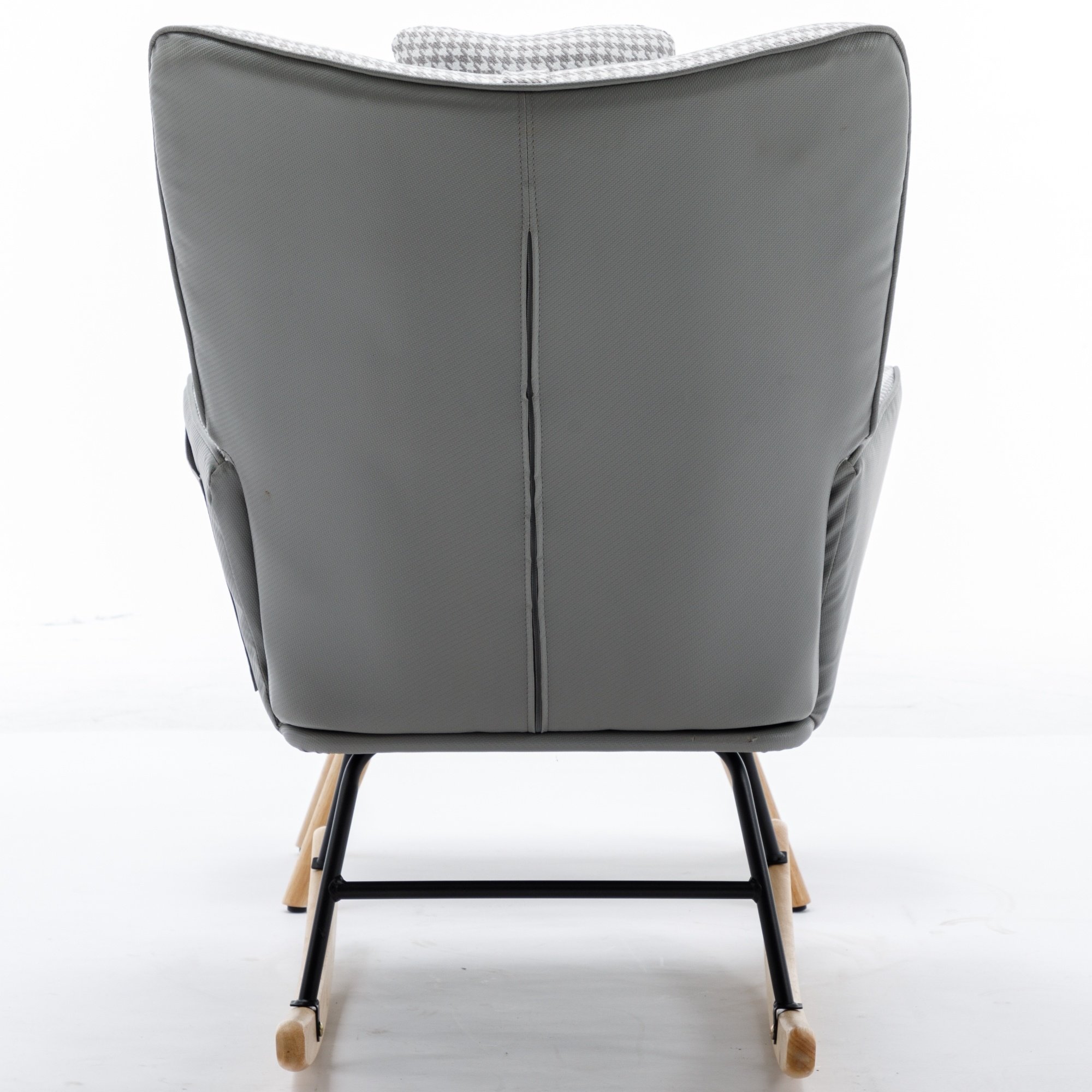 > 35.5 inch Rocking Chair, Soft Houndstooth Fabric Leather Fabric Rocking Chair for Nursery, Comfy Wingback Glider Rocker with Safe Solid Wood Base for