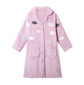 Cute Soft Pink Cloud Flannel Lapel Bathrobes for Girls Winter Bath Homewear