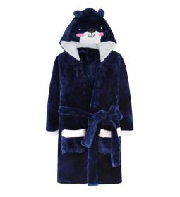 Cartoon Dog Soft Plush Hooded Bathrobe for Boys Winter Bath Homewear, Dark Blue