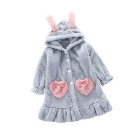 Lovely Girls Grey Cozy Flannel Hooded Robe With Ears for Winter Bathrobe Homewear