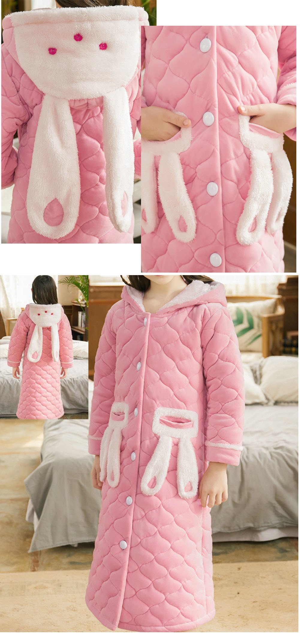 Cute Rabbit Hooded Sleepwear Thick Bathrobe for Girls Winter Bath Homewear Cute Rabbit Hooded Sleepwear Thick Bathrobe for Girls Winter Bath Homewear