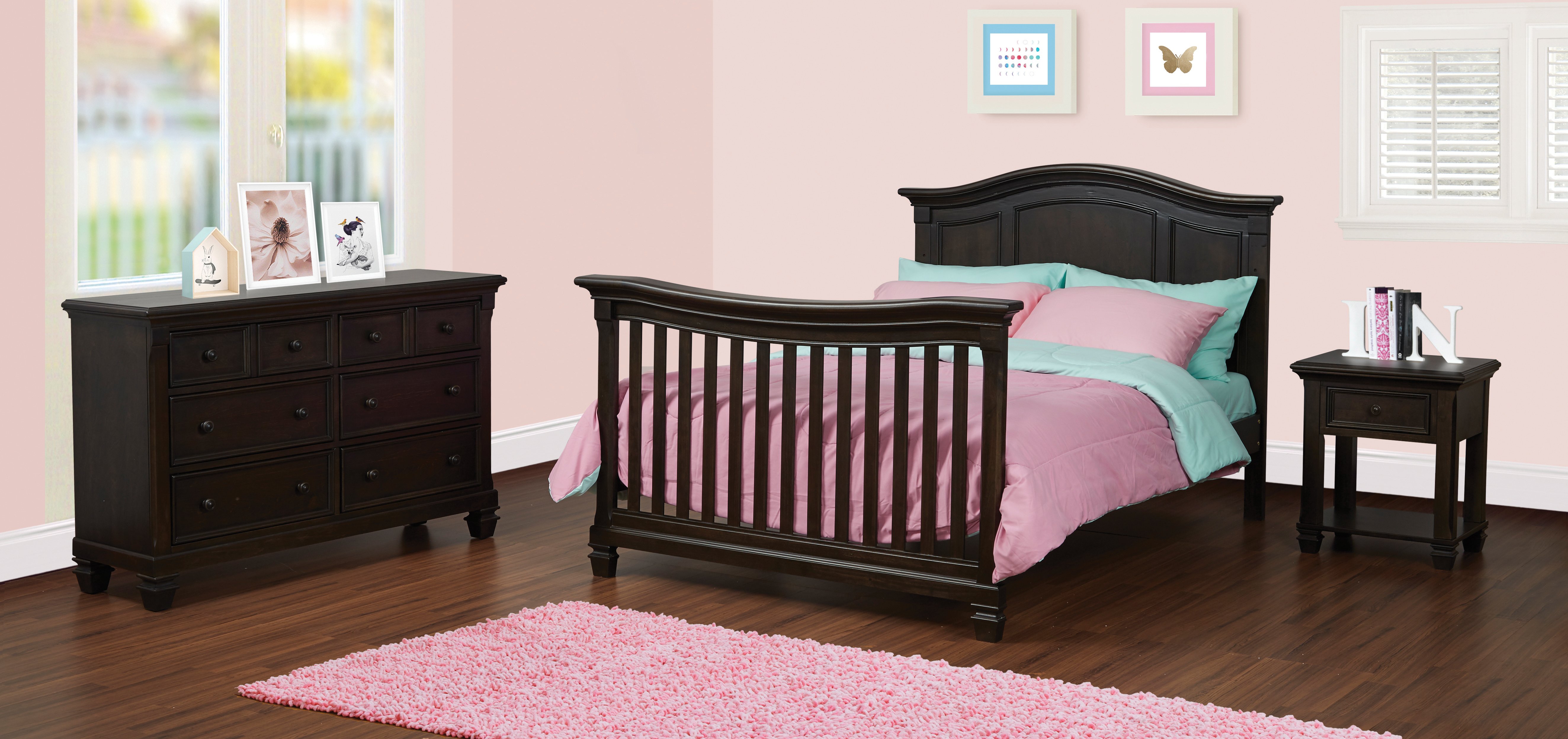 Welcome classic and timeless design into your little one's nursery with the Glendale Collection. The 4-in-1 Crib is desgined to convert from a crib, to a toddler bed, then a day bed, and finally into a full-sized bed, allowing it to be a part of your child's room for life. This collection's superior craftsmanship and it's time-honored desgin ensure it will never got out of function or style! The full collection is available in a unique Charcoal Brown finish as well as a traditional Pure White finish. Simply put, the understated beauty of the Glendale Collection would suit any style nursery. The color is Charcoal Brown.