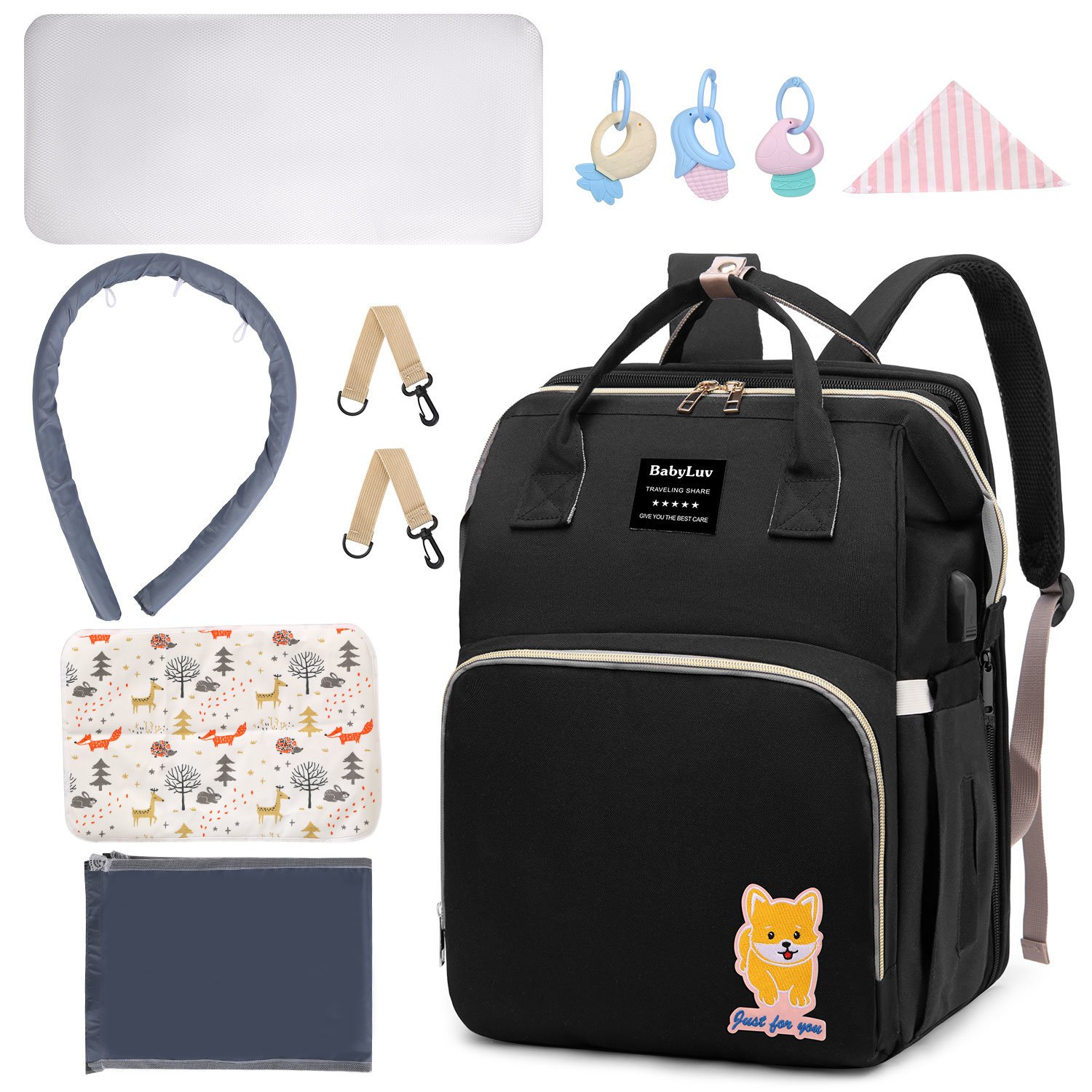 *Multifunctional Diaper Bag*:This is a diaper backpack+changing table+travel bassinet for new mom and dad. The backpack measures 15.75x11.81x7.87in and the bassinet measures 27.56x11.81x7.87in,which provides enough space for baby to move freely. When baby is sleepy,you can extend it into a crib quickly. No need to worry about diaper changing and baby sleeping when taking your baby out.