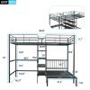 Full Over Twin Metal Bunk Bed with Built-in Desk, Shelves and Ladder,